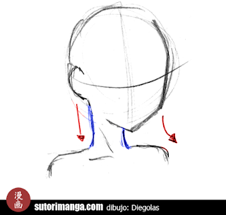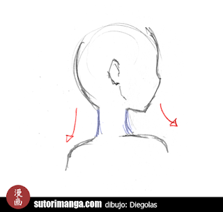 Un caso especial es para el cuello visto desde atrás, este dibujo requiere un poco más de noción de proporción pero sé que ustedes pueden lograrán manejarlo:
