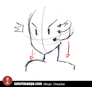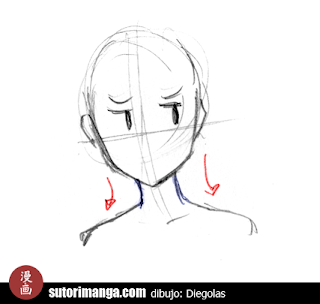 Y para finalizar, una excepción a todo lo que hemos visto, como se ve el cuello si el personaje que dibujamos está algo agachado o con la cabeza hacia delante: