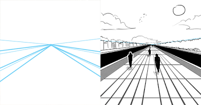 ResponderEliminarBueno, una recomendación añadida: comenzar dibujando la línea del horizonte, aunque éste quede luego oculto por el paisaje. Sobre esa línea irá siempre el punto de fuga.