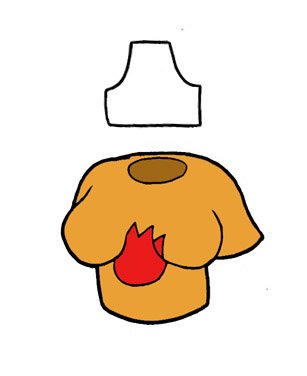 - El dibujo se estira en la parte superior (el portador de la remera hizo varios ejercicios de musculatura y la remera le queda ajustada)