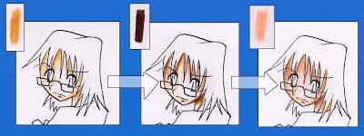 Para la piel: Primero agregue un poco de café claro, para las sombras, después agregue café oscuro donde las sombras son más marcadas. Al final, encima de todo agregue el color principal de la piel.