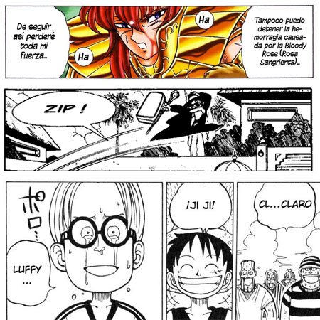 Globos circulares en viñetas de Saint Seiya Next Dimension, Dragon Ball y One Piece