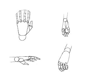 Un buen consejo para el dibujo no solo de manos si no tambien perspectivas difíciles es: "no dibujar lo que no se ve", muchas veces hacemos una imagen en nuestra mente de lo que queremos dibujar ejemplo una mano, en algunas posiciones los dedos se doblan y no se alcanzan a ver pero nuestra mente tan maravillosa completa esos dedos que no se ven y terminamos dibujandolos dando como resultado una mano deforme, próximamente haré una entrada sobre este tema de los muchos errores que cometemos al dibujar, saludos!!!