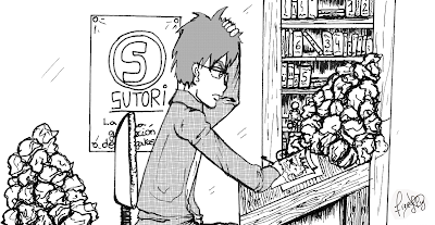 Hola a todos, como hoy es 29 del mes, como es mi costumbre hasta ahora, les traigo un capítulo de República Gada... uno más porque yo se que me extrañan, así que nuevamente me aparezco por cuarta vez en nuestro querido Sutori, donde compartimos el sitio con grandes artistas y yo... que soy un convidado de piedra. Pero bueno, así son las cosas. Sigo con problemas de tiempo ya que estoy dibujando todo el condenado día y más en febrero, donde tuve que adelantar varios capítulos para cumplir con ciertas demandas en la revista en la que publico (Donde el Rock es el tópico) y todo resultó en un entretenido crossover entre República Gada y Made in China, de Belén Andrade, para la revista "Noviembre". También es una buena forma de darme un regalito de cumpleaños terminando las tareas en tiempo y forma.