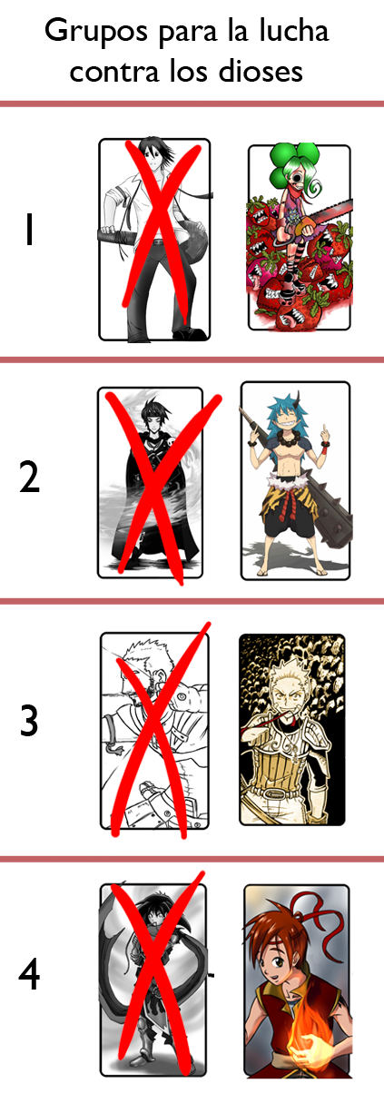 Pero bueno, como nuestros héroes seguirán luchando, vamos a dar la información de esta ronda, y en breve veremos cómo termina todo esto. Os informo, Rojo y Azul necesitan el alma de un héroe cada uno para reponer sus cuerpos, y para ello se enfrentará cada uno a dos héroes, con el objetivo de dejar sólo uno en pie para uso propio.