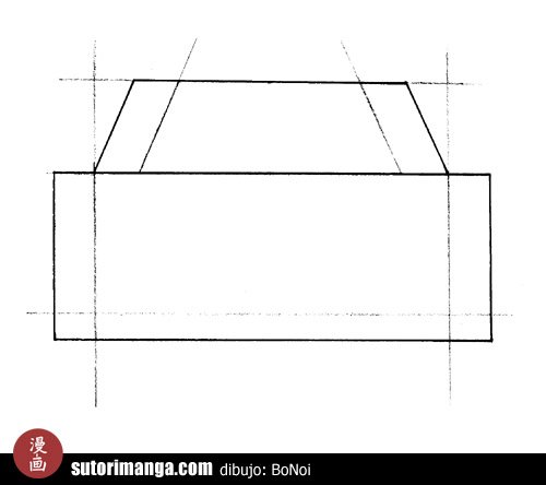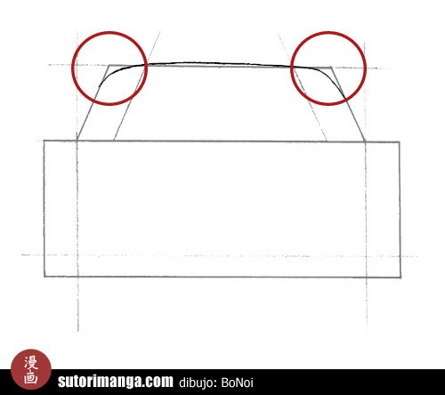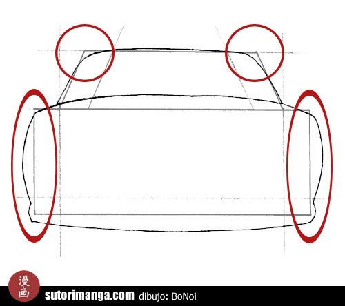 Dependiendo el tipo de coche tanto el tamaño del trapecio superior como el del rectángulo inferior variaran, por poner un ejemplo, un todoterreno lo dibujaríamos con un trapecio y un rectángulo más alto.