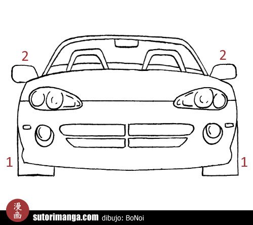 Nuestro deportivo tiene unos rasgos muy fáciles de dibujar, unas ópticas muy agresivas y unas entradas sin mucha dificultad, así que nos podremos recrear un poco al dibujarlas y empezar a añadir algún fondo si lo deseamos.