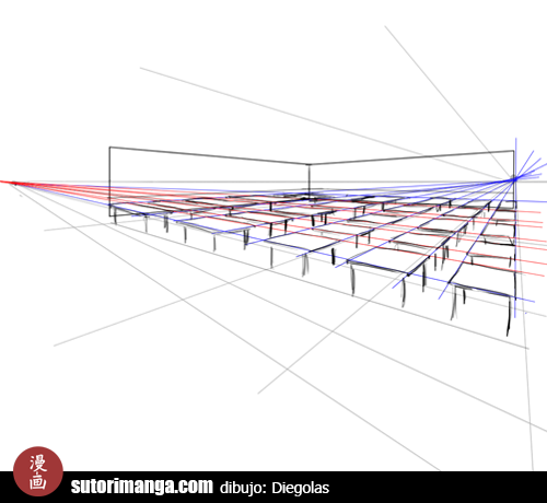 ResponderEliminarLa perspectiva de 2 puntos de toda la vida, pero con muchas mesas... Yo cuando veo tantas líneas, me coge algo... jejeje, aunque sigue siendo el método más usado sino tenemos "la mano alzada" claro...