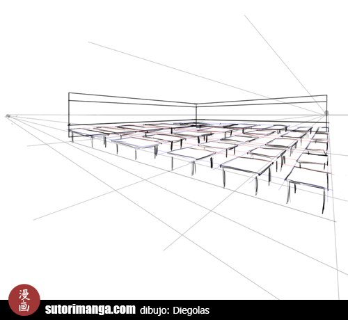 Continuando con la maratón de tutoriales dedicados a escenarios típicos de manga, no podría faltar el típico salón de clases. Es bien sabido que la mayoría de las escenas de mangas juveniles o de humor de chicos adolecentes suceden en el aula. Es por esto que en esta ocasión haré un paso a paso de cómo hacer un aula de clases usando técnicas de perspectiva, haciendo alusión al tutorial entregado anteriormente por Jesulink pero esta vez con dos puntos de fuga.