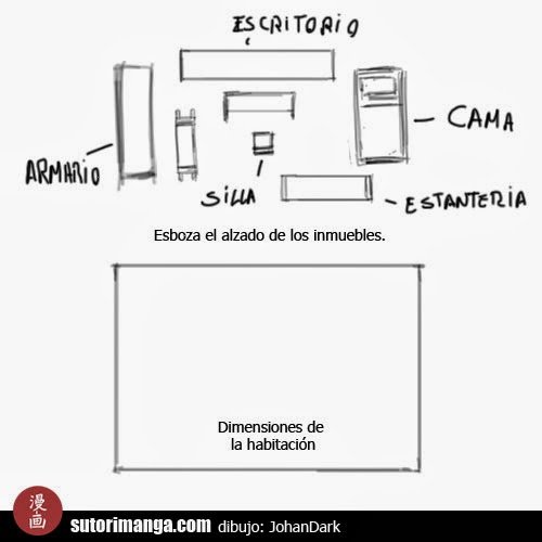 Para empezar de cero, lo mejor es partir de la planta (arquitectónicamente hablando) de la habitación en concreto. En este caso debemos tener claras las dimensiones de esta y que muebles van a ser visibles desde donde decidamos poner la "cámara imaginaria".