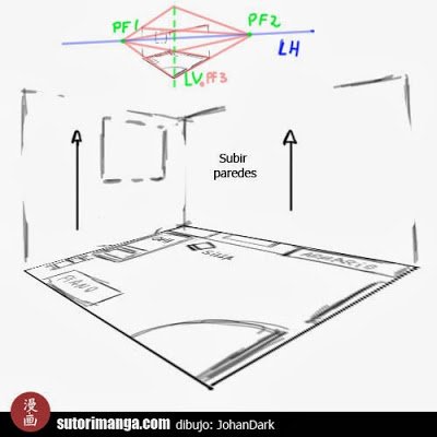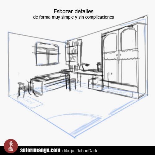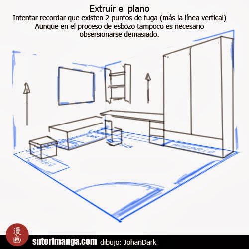 Aunque en el paso anterior he recomendado usar los puntos de fuga, yo me los he pasado un poco por el forro, es importante tenerlos en cuenta, pero no obsesionarse con ellos cuando estás creando el "esbozo".