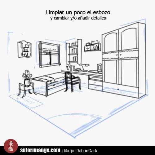 Básicamente, ahora ya queda ahondar más en los detalles, mirar mejor que todo encaje con los puntos de fuga y finalmente entintar el dibujo.