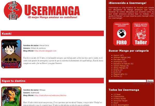 La sección estuvo bastante tiempo inactiva, y fue sobre primavera de 2010, cuando se creó el Usermanga Blog (está inactivo, pero aún puede visitarse). El Blog era una "enciclopedia" que sólo almacenaba una ficha de los Manga con descripción, autor, página web... No funcionaba mal, pero era complicado gestionar las fichas de los trabajos y sobre todo, el espacio no servía a los autores para expresarse o notificar sus propias obras.