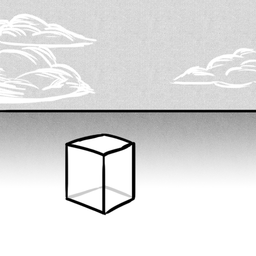 Como es mucho más fácil dibujar en perspectiva una caja que a un Manolito, la pondremos en una posición deseada, teniendo en cuenta - como siempre - la línea del horizonte y el punto de fuga.
